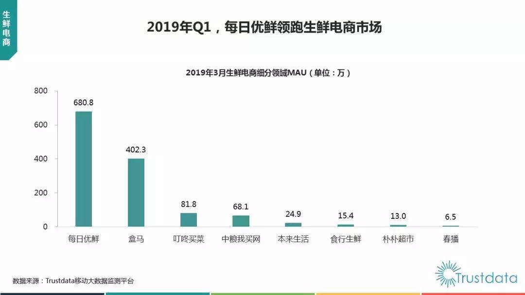 作為電商領(lǐng)域中新物種,前置倉電商模式的先驅(qū)者,每日優(yōu)鮮在全國布置的前置倉網(wǎng)點(diǎn)已經(jīng)超過1500個(gè)。截至2019年第一季度,每日優(yōu)鮮以680.8萬的月活量領(lǐng)跑生鮮電商行業(yè),并吸引到了49.2%的行業(yè)新增用戶。