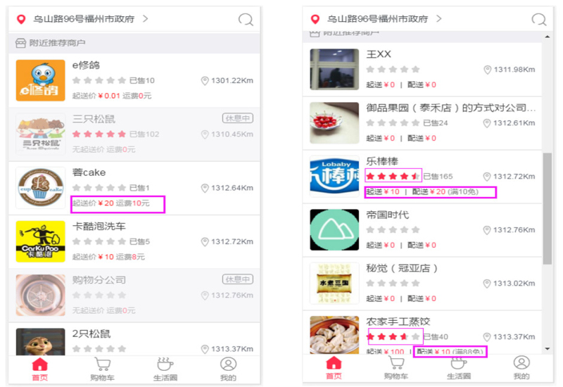 優(yōu)化過后,不同的商戶評價(jià)星級(jí)有區(qū)分,還體現(xiàn)了“滿減”等優(yōu)惠活動(dòng),更能吸引用戶消費(fèi),使用體驗(yàn)比較直觀。